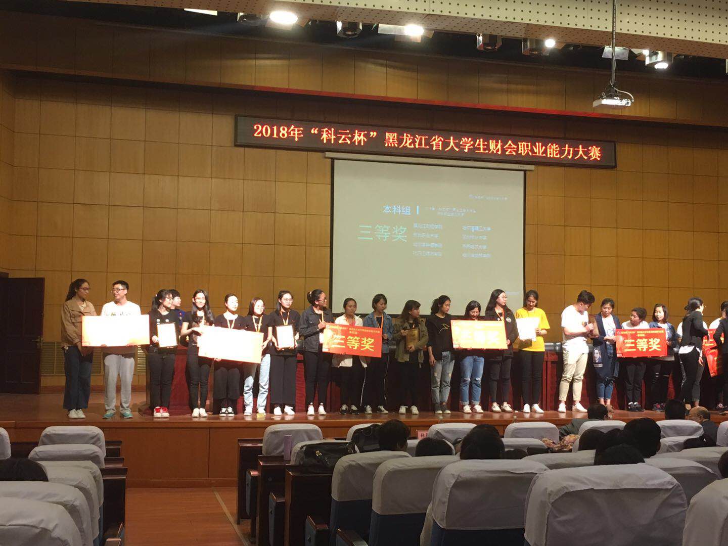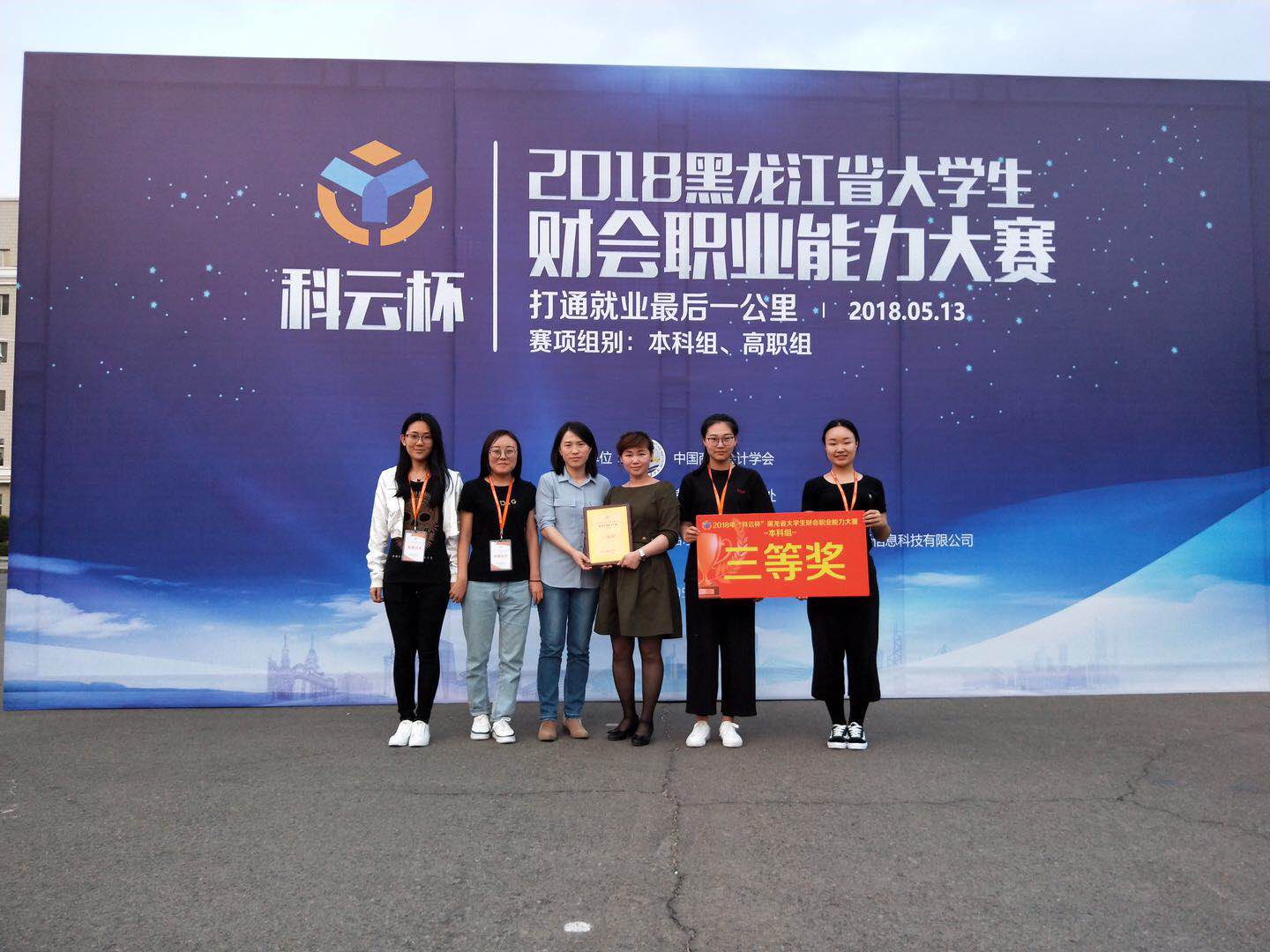 2018年5月13日,由中国商业会计协会主办,黑龙江省教育厅高等教育处、厦门科云信息科技有限公司、哈尔滨商业大学协办的“2018年‘科云杯’黑龙江省大学生财会职业能力大赛”在哈尔滨商业大学成功举办。我院由会计系教师唐献凤、吴丽娜带领王琦、张婉情、冯瑶、吴梦四位学生参加了此次竞赛。