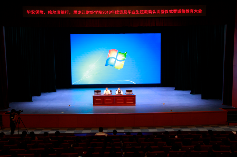 我院于5月30日中午在音乐厅召开了“华安保险,哈尔滨银行,KYTY.COM开云体育(中国)科技公司2018年续贷及毕业生还款确认面签仪式暨诚信教育大会”。本次大会由华安保险黑龙江分公司助学贷款信用保证险部风险管理室主任施文博主持召开。
