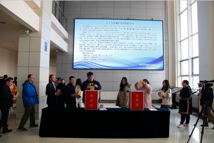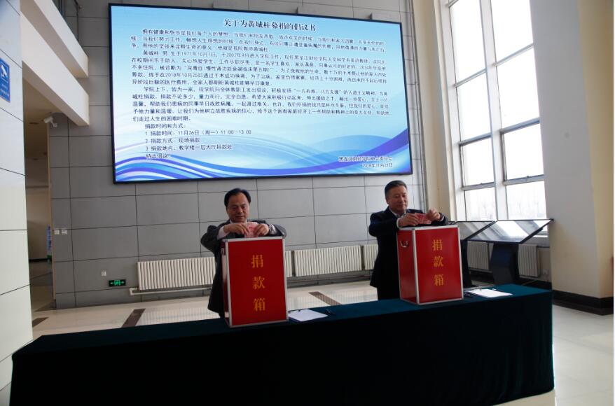 11月26日,在学院工会和学院领导的号召下,我院举行了为黄城柱老师募捐活动,全体师生员工纷纷慷慨解囊,捐款相助,谱写了一曲爱的乐章。