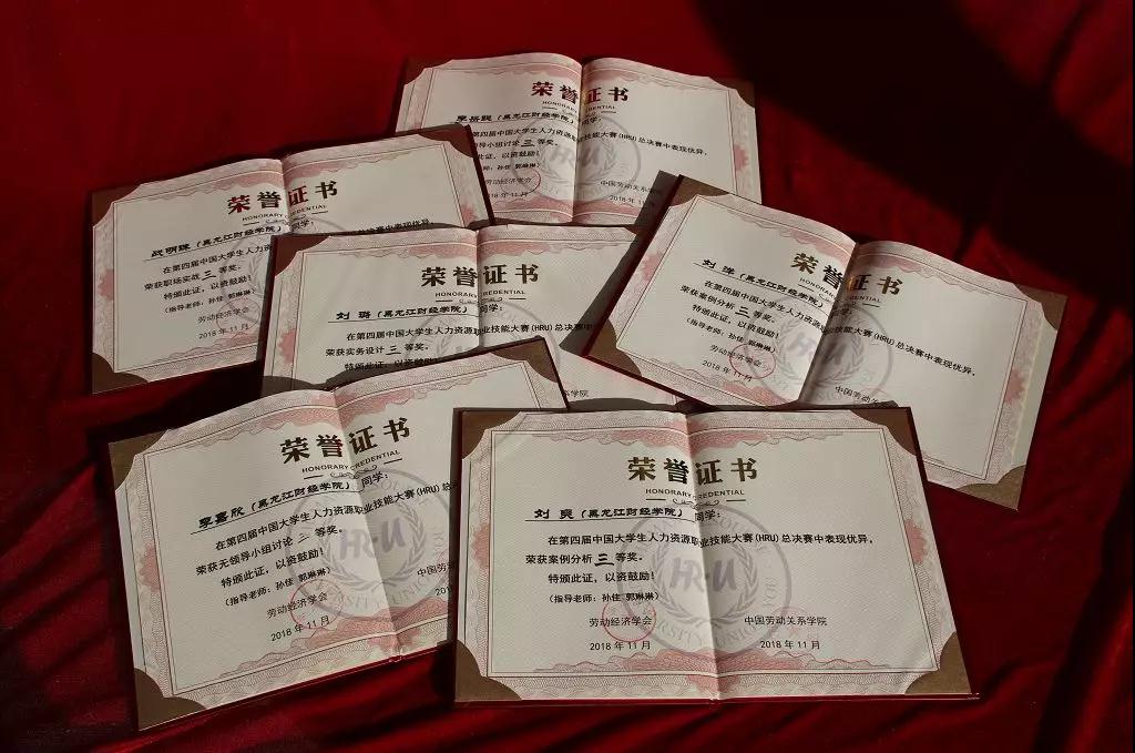第四届中国大学生人力资源职业技能大赛(HRU)总决赛于2018年11月24—25日在中国劳动关系学院举行。由我院管理系人力资源管理教研室教师孙佳与郭琳琳指导,孙佳率队,带领刘洋、李岳聪、战明珠、刘璐四名同学参加了团体决赛,刘爽和李嘉欣两名同学参加了个人赛,我院学子凭借敏捷的思维、扎实的专业知识积累、严谨的分析、默契的团队配合及良好的心理素质最终获得了全国总决赛团体总分第三名和“HRU十佳高校学习力”两项大奖,个人赛六位学生均获得个人三等奖。本届大赛还举办了“2018年海峡两岸大学生学术与专业实践论坛”,在入选的64篇论文和4个情景再现中,教师孙佳指导的6篇论文全部入选,分获一二三等奖。