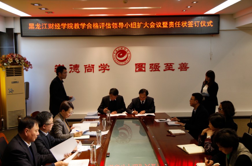 为迎接教学合格评估工作,明确任务,落实责任,11月28日下午,我院在教学楼第一会议室召开教学合格评估领导小组扩大会议暨责任状签订仪式,院长魏兆胜出席会议并讲话,党委书记裘杰主持会议。