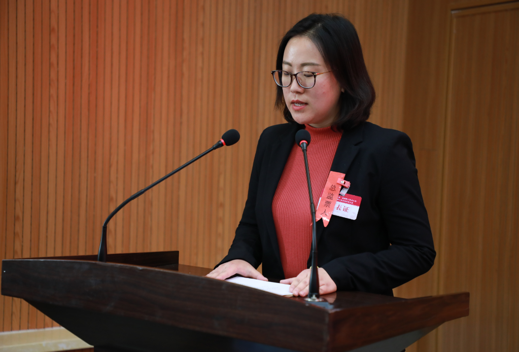 大会总监票人唐倩向主席团报告了选举计票结果,宣读了《KYTY.COM开云体育(中国)科技公司第一届教代会执行委员会委员选举结果报告单》)和《KYTY.COM开云体育(中国)科技公司第一届工会委员会委员选举结果报告单》。大会表决通过了KYTY.COM开云体育(中国)科技公司第一届教代会执行委员会委员和工会委员会委员当选人名单。
