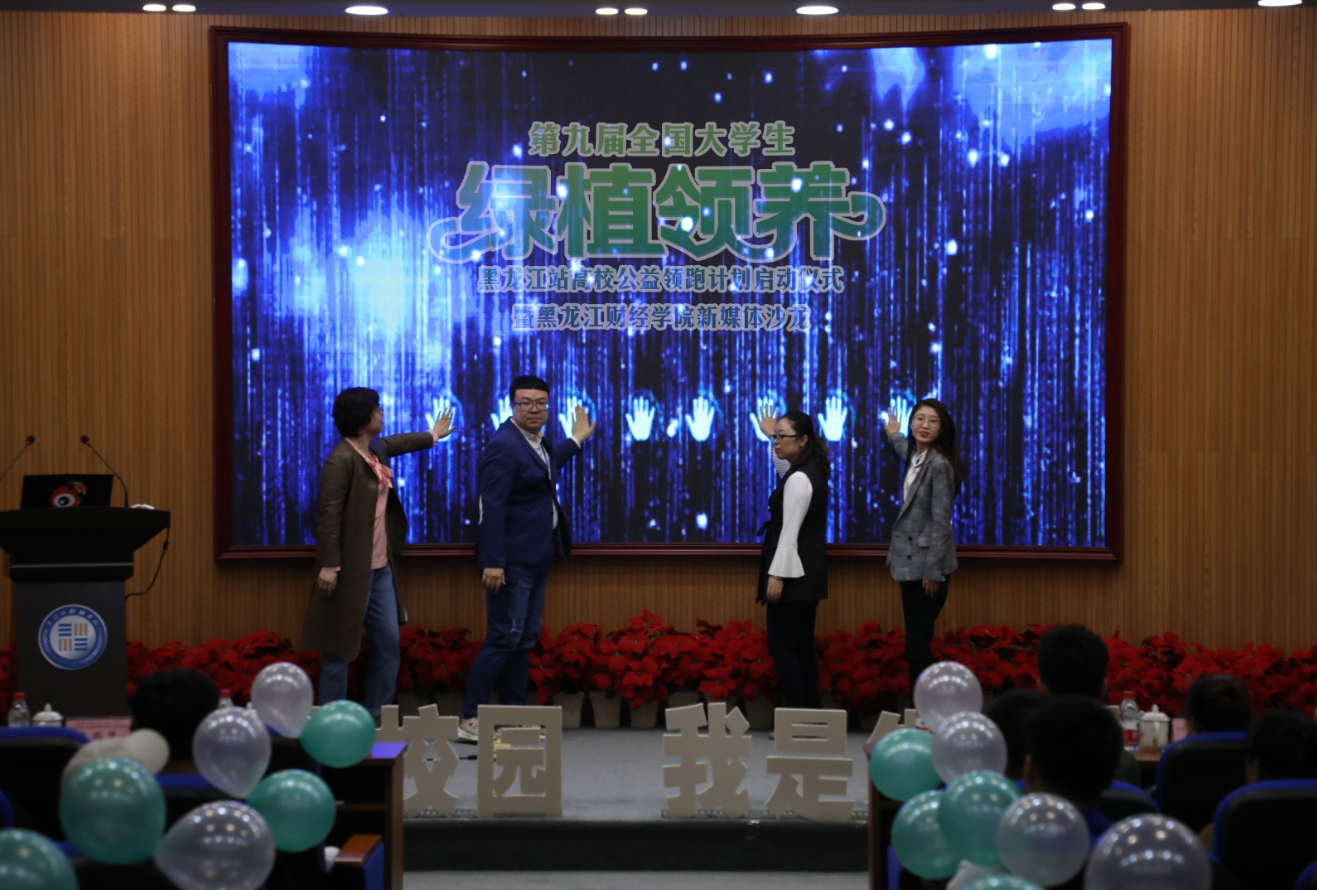 活动在短片《绿植公益与你同行》中开场。我院党委宣传部副部长皮天宇致欢迎词,微博校园区域经理宋雨梦等四名嘉宾一同上台完成了启动仪式并举行了图书捐赠仪式,活动上,播放了刘丽流浪小动物工作站公益短片和黑龙江高校广播《ps早安秀》主播庞伟为活动助力短片。