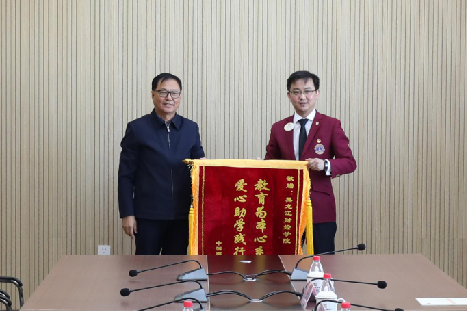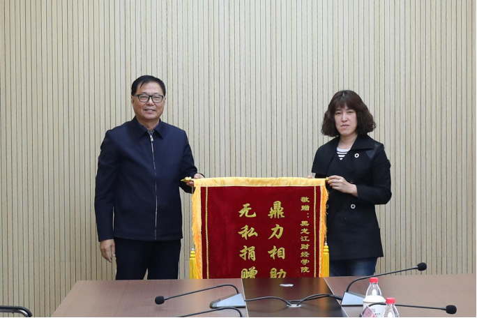 中国狮子联会哈尔滨代表处主席王瑜琦向我院赠送锦旗