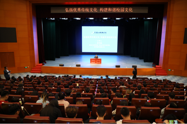 为弘扬中华民族优秀传统文化,加强校园文化建设,我院于5月14日下午,在音乐厅举办“弘扬优秀传统文化,构建和谐校园文化”主题讲座。我院学生处邀请黑龙江省委党校、黑龙江省行政学院哲学教研部曹学娜教授为同学们讲授传统文化的基本内容、主体构建和主要传播路径。此次讲座有各系学生代表500余人参加。