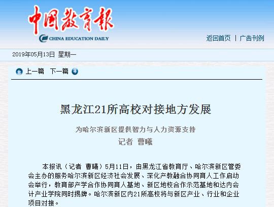 3.【中国教育报】黑龙江21所高校对接地方发展 为哈尔滨新区提供智力与人力资源支持