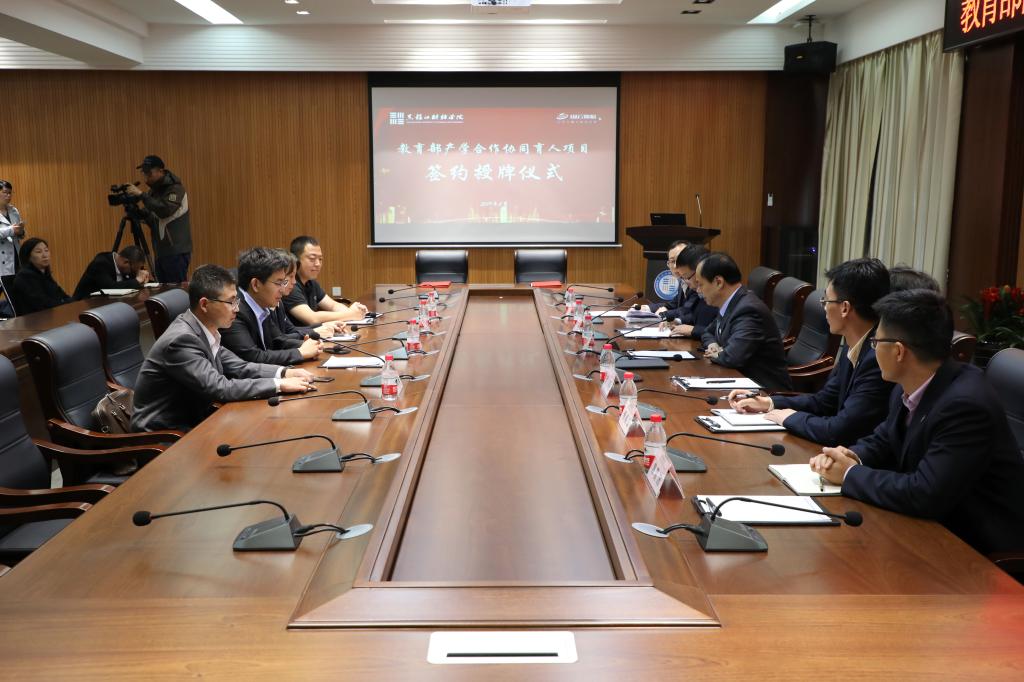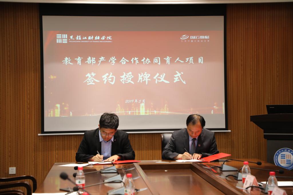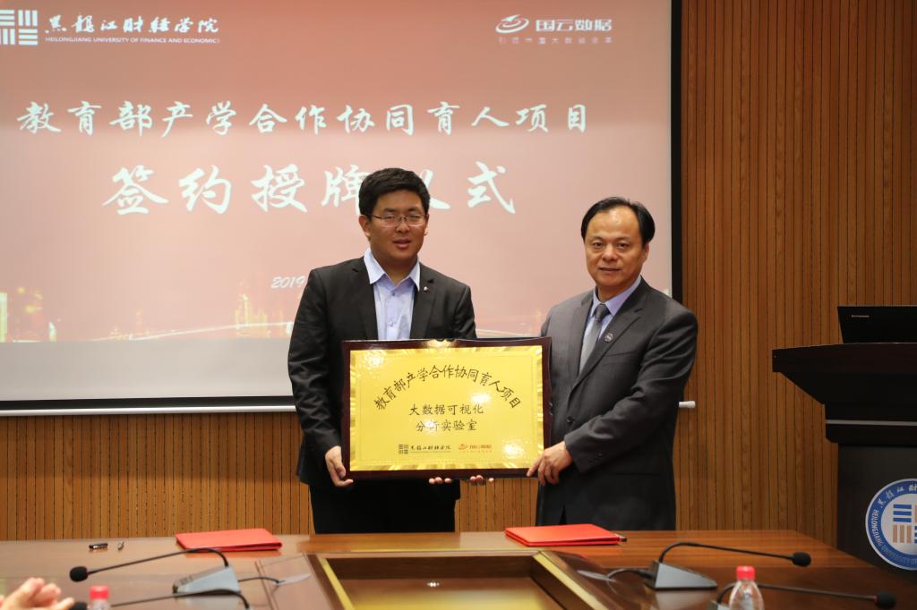 5月31日,我院在教学楼第一会议室举行教育部协同育人国云数据项目签约授牌仪式。常务副院长于长福与苏州国云数据集团联合创始人、教育事业部总监王一民签订《教育部产学合作协同育人计划合作框架协议》,并为大数据可视化分析实验室授牌。哈尔滨国云数据科技有限公司总经理陆洪富,学院教务处处长庹莉,就业指导中心主任郭海峰、科研处处长郎奠波,实验中心主任黎明出席签约授牌仪式。财经信息机工程系主任葛雷主持签约授牌仪式。