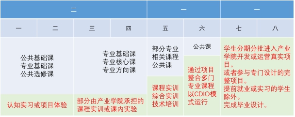 CT工程产业学院是财经信息工程系“211产教一体”人才培养模式综合改革的重要组成部分。“211产教一体”模式指的是用“2”年时间,夯实学生的专业基础理论,达成学生通用素质要求,用于支撑“基础理论扎实”的人才培养目标;用“1”年时间通过面向产业的应用型课程设置和技术培训,实现学生到工程技术应用人才的初步转化;再用“1”年让学生在产业(校内产业学院和校外实习基地)中历练,从而达成应用型人才培养的目标。
