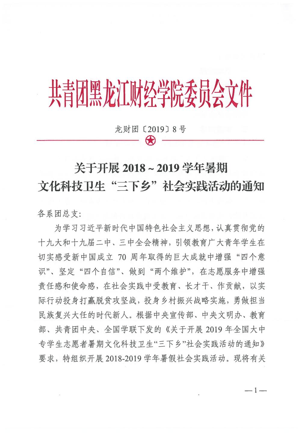 关于开展2018~2019学年暑期文化科技卫生“三下乡”社会实践活动的通知