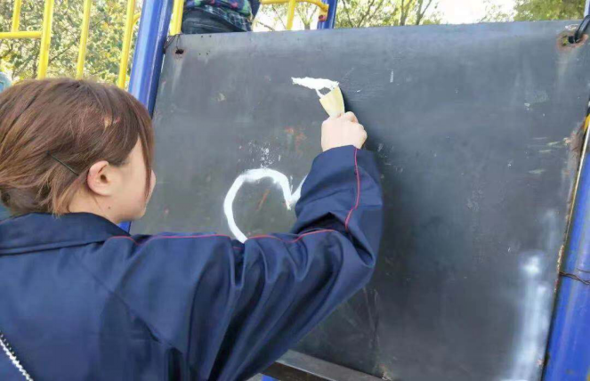 在本次活动中,各个党员志愿者积极配合,干劲十足,一群身着龙财蓝色校服的同学们有的随手捡起地上的垃圾,有的挂掉随处可见的小广告,有的人用抹布擦拭体育器材等公共设施。