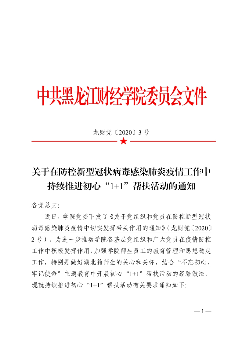 关于在防控新型冠状病毒感染肺炎疫情工作中持续推进初心“1+1”帮扶活动的通知