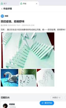 疫情阻挡不了教师们的工作热情,同学们的学习态度也没有因为在家上课而有所懈怠,与正常上课时一样认真对待每门课。同学们体现出极高的求学热情,能积极配合注册使用在线平台。在短短的两周里,同学们认认真真地完成了每一幅作品。