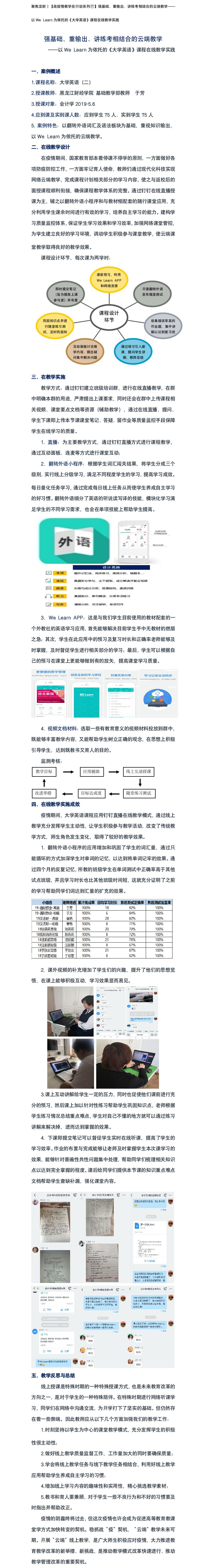 【聚焦龙财】【战疫情教学在行动系列⑰】强基础、重输出、讲练考相结合的云端教学——以We Learn为依托的《大学英语》课程在线教学实践
