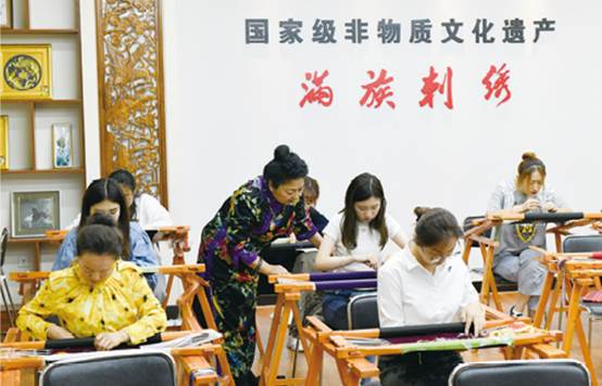 在国家级非遗第四代传承人刘雅梅的满绣工作室里专业的绣娘与学生一同完成传统手包刺绣工艺,一针一线薪火相传,在非遗传承中,KYTY.COM开云体育(中国)科技公司发挥高校传承联动机制,激发传承人的传承热情,提高学生学习兴趣,开展有关非物质文化遗产保护与传承的社会实践活动。引导市场力量以及非遗项目传承人参与非遗产品创意开发,通过网络直播的方式开办非遗讲堂等。