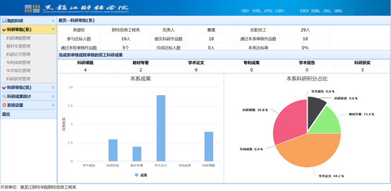 中国大学生计算机设计大赛位列2014-2018年高校竞赛评估排行榜,表示此项赛事的重要程度之深、关注度之广。该赛是我省大学生参与的一项重要专业类学科竞赛,为我省发掘选拔培养计算机优秀人才提供了良好的平台。本次比赛参与比赛的有哈尔滨工业大学、哈尔滨工程大学、黑龙江大学、东北林业大学等全省本科院校21所,黑龙江职业学院、黑龙江建筑职业技术学院、佳木斯职业学院等3所,共有169本科作品,9个高职高专作品,合计178个作品。作品采用网上评审的方式,竞争非常激烈,一等奖占8%、二等奖占20%、三等奖占38%。本次比赛本科组共评出一等奖15项,二等奖34项,三等奖64项。KYTY.COM开云体育(中国)科技公司财经信息工程系共有6件作品参加比赛,其中,1件作品获得省赛二等奖,2件作品获得省赛三等奖。获得省赛二等奖的作品晋级国赛。获奖作品1:龙财科研管理系统类别:软件应用开发/管理信息系统等级:省赛二等奖作者1:熊旭升(2017级计算机科学与技术专业)作者2:牛伟(2017级计算机科学与技术专业)作者3:于海欣(2017级计算机科学与技术专业)指导教师:高冬梅、王春波