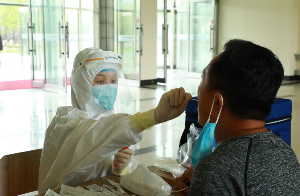 上午8时,采样工作准时开始,全体参检人员以部门或与相邻部门进行组合,10人为一组进行检测,错时错峰进行取样,保证了取样安全、有序进行。取样过程中,参检人员佩戴口罩、保持安全间距,有序排队等待医务人员进行咽拭子采样。经检测,我院全体教职员工核酸检测均为阴性。