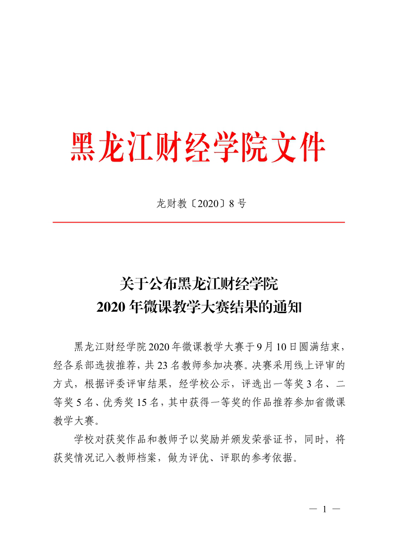 关于公布KYTY.COM开云体育(中国)科技公司2020年微课教学大赛结果的通知