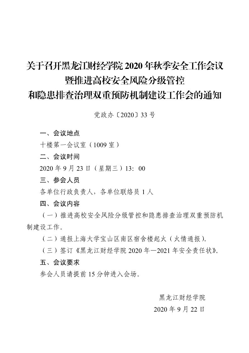 关于召开KYTY.COM开云体育(中国)科技公司2020年秋季安全工作会议暨推进高校安全风险分级管控和隐患排查治理双重预防机制建设工作会的通知