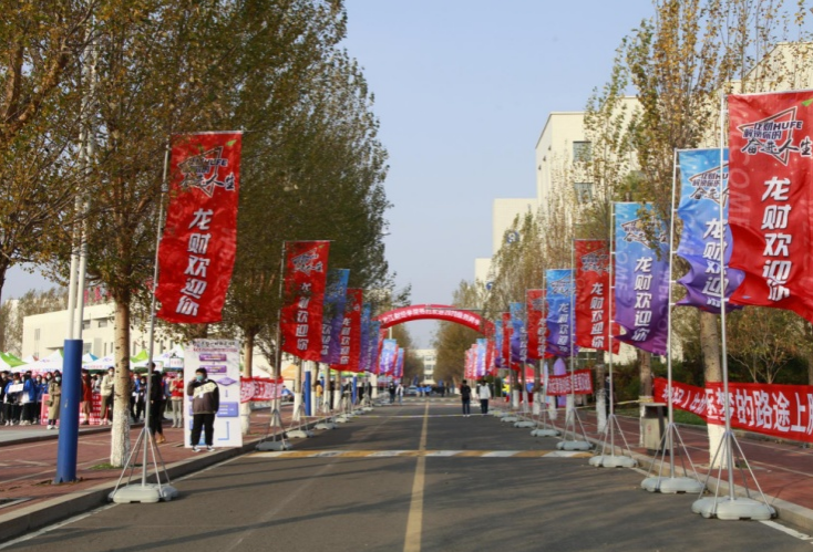 为了营造更加多元、丰富的迎新氛围,学院在哈站、哈西站均安排有迎新工作站,醒目的接站引导牌确保新生出站的第一时间就能找到龙财的方向。迎新点的巨型红色迎新拱门,悬挂在校园内的迎新横幅和指示标识,都在向刚刚走进校门、眺望前方的新生致以第一声问候。各系在新生报到点两侧摆放了各具特色的展板,宣传各系的底蕴文化,让新生进一步了解专业特色。在东门报到点,还布置了很多别具一格的景观,“萌新们”争相到巨型火车票、签名墙前拍照留念,写下自己的名字和对未来的期许展望。一条条迎新横幅随风轻扬,一张张萌新笑脸灿烂绽放,迎新写真、LED屏幕鲜亮醒目,整个校园到处洋溢着浓烈热情的迎新氛围,精心布置的“龙财解锁你的奋进人生”等横幅吸引了不少新生以其为背景定格这具有纪念意义的瞬间。