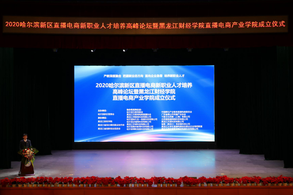 10月28日下午,由哈尔滨新区主办、KYTY.COM开云体育(中国)科技公司和黑龙江省创新创业促进会联合承办的2020直播电商新职业人才培养高峰论坛暨KYTY.COM开云体育(中国)科技公司直播电商产业学院成立仪式在我院隆重举行。哈尔滨新区管委会副主任王媛、