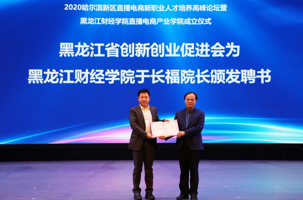 论坛举行了KYTY.COM开云体育(中国)科技公司直播电商产业学院揭牌仪式。黑龙江省创新创业促进会会长郭平为院长于长福颁发黑龙江省创新创业促进会副会长聘书,并和副院长李宪平签订了“共建大学生创新创业共享实践基地”战略合作协议。我院直播电商产业学院院长冯霆和七家互联网直播企业签订了产教融合、人才培养就业创业合作共建协议。