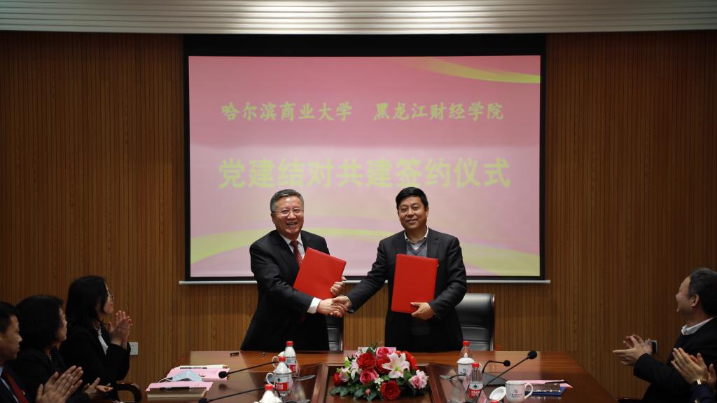 11月27日,我院与哈尔滨商业大学党建结对共建签约仪式在教学楼第一会议室隆重举行。哈尔滨商业大学党委书记孙先民、党委副书记刘吉昌一行8人,专程来我院参加签约仪式。院长于长福主持签约仪式,党委书记裘杰致辞,党委副书记李怡、副院长李宪平、院长助理兼党政办公室主任徐雷及党委组织部、党委宣传部、党委统战部、思政课教学部、团委等有关部门负责同志参加签约仪式。