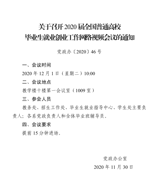 关于召开2020届全国普通高校毕业生就业创业工作网络视频会议的通知