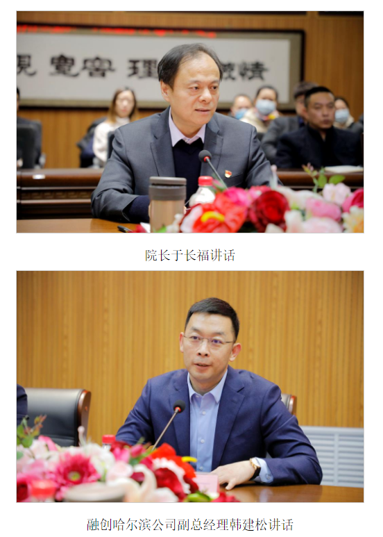 会上,李宪平与任大鹏签署了《校企合作实习基地协议书》,融创哈尔滨公司营销负责人分别对项目及团购优惠政策进行了介绍和解读。