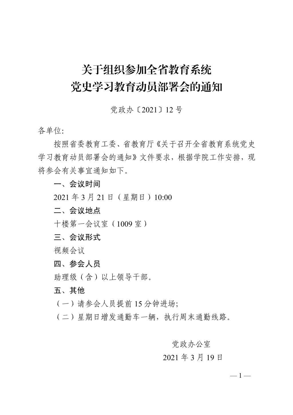 关于组织参加全省教育系统党史学习教育动员部署会的通知