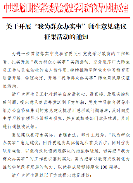 关于开展“我为群众办实事”师生意见建议 征集活动的通知