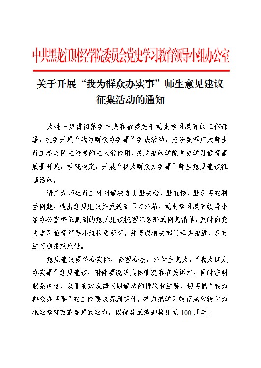 关于开展“我为群众办实事”师生意见建议征集活动的通知