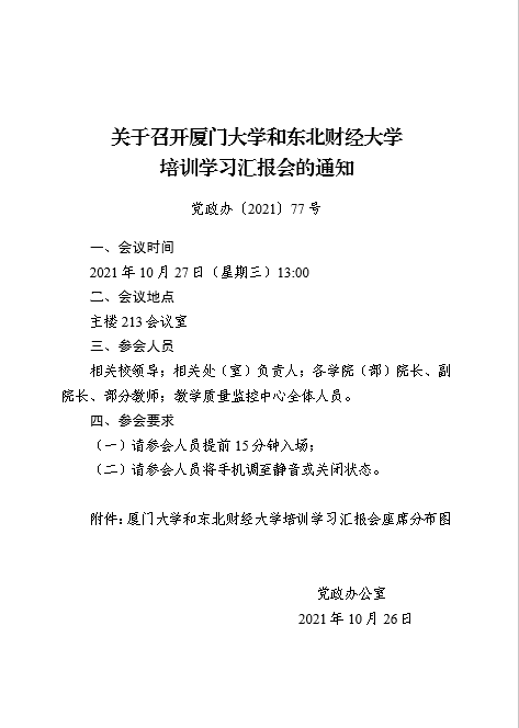 关于召开厦门大学和东北财经大学培训学习汇报会的通知