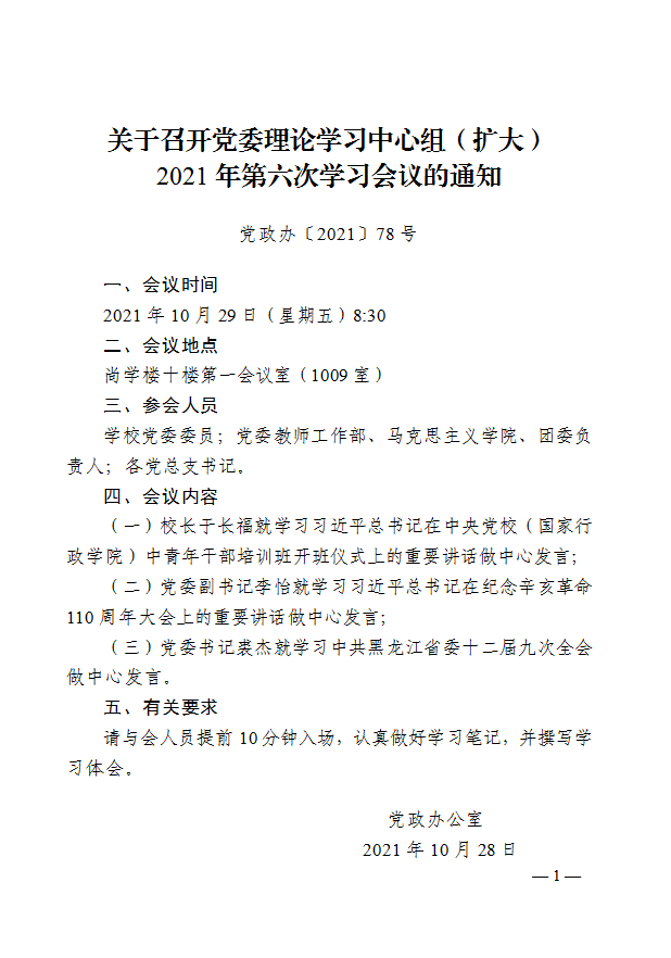 关于召开党委理论学习中心组(扩大)2021年第六次学习会议的通知