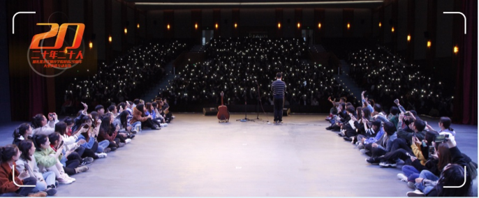 如果说周刊演播室是冯潇的灯塔,那另一个能照亮他的地方就是音乐厅了。没有活动黑暗又安静的音乐厅舞台,是冯潇默契的伙伴,214颗舞台灯光,在他身上折射出不同的光芒。“这个地方实在是太熟悉了,大一的时候,除了寝室、教室,剩下就应该只剩音乐厅了,舞台就是我的全部。”