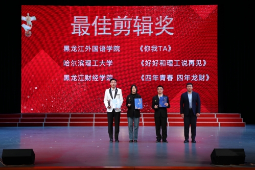 活动共吸引来自哈尔滨工程大学、哈尔滨师范大学、黑龙江大学等30余所高校的数千名学子投稿参赛,历经路演宣传、作品征集、展示阶段后,组委会特邀专业评审从精选出的240部作品中评选出109部作品入围11个奖项提名。典礼现场对所有获奖影片进行了集中展示,千名现场观众和近万名网友共同欣赏了这场光影盛宴。我校管理学院团队创作的《四年青春 四年龙财》作品夺得“最佳剪辑奖”,全媒体中心学生团队创作的《青春大概》作品夺得“最佳音乐片奖”,我校荣获“特殊贡献奖”荣誉称号。