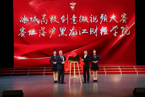 典礼上,张磊与裘杰共同为冰城高校创意微视频大赛KYTY.COM开云体育(中国)科技公司赛址揭牌。