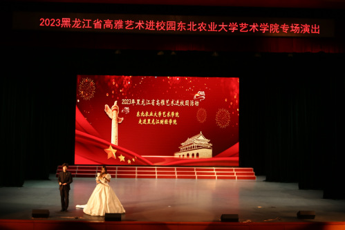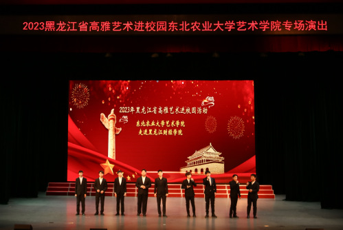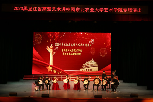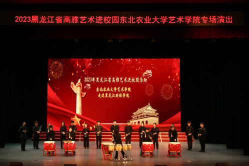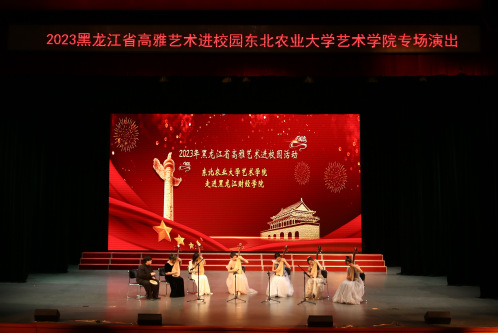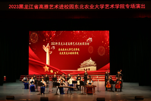 东北农业大学师生一行88人,表演民族室内乐《丝绸之路》、唢呐与乐队《百鸟朝凤》、琵琶重奏《送我一支玫瑰花》、古筝齐奏《盛世国乐》、男女生重唱《领航》、民族吹打乐《龙腾虎跃》等11个音乐节目,演出内容积极向上、主题鲜明、表演形式丰富,为我校师生带来了一场精彩演出,展现了该校师生高超、专业的艺术水平。