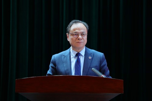于长福代表学校向受到表彰的优秀学生、先进集体表示祝贺,并向全校同学提出了三点希望:一要铭记历史,做有家国情怀的爱国青年,用“爱国情、强国志、报国行”书写青春注脚,不负时代之问。二要志存高远,做有远大理想的中国青年,将小我融入祖国的大我,与时代同步伐、共奋进,更好地实现人生价值、升华人生境界。三要敢于担当,做有过硬本领的有为青年,用新理论、新知识、新观念充实自己,努力实现知识素养与思想境界双向提高、学习能力与实践能力同步提升。他勉励同学们要不断积蓄能量、厚积薄发,为实现中国式现代化凝心聚力、笃行不怠、勇毅前行。