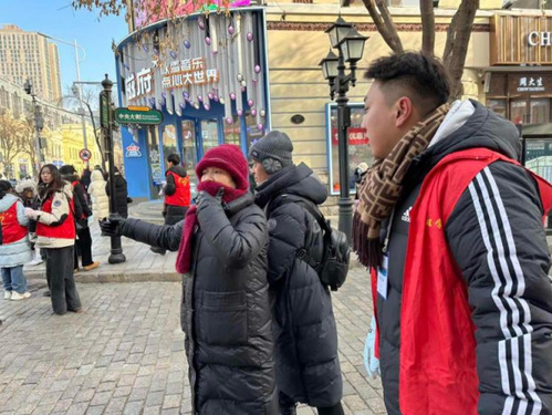 在社会实践过程中,实践团成员充分发挥专业知识和能力,为来访游客开展导游志愿服务,讲解冰雪大世界发展历程、哈尔滨历史文化故事、提供游玩路线建议等,得到了来哈游客的称赞。