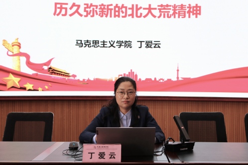 仪式结束后,马克思主义学院马克思主义基本原理教研室主任丁爱云教授,以《历久弥新的北大荒精神》为题,从北大荒精神的源起、北大荒精神的内涵及时代价值、弘扬北大荒精神,做北大荒精神的践行者三个方面,为学员讲授开班第一课。