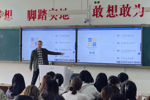 4月10日,人文学院在尚学楼535进行以“创造梦想——人工智能广告行业的未来”为主题的“经纬讲坛”学术活动。本次活动历时90分钟,由人文学院任海峰副教授主讲,为广告学教研室全体教师和2021级、2022级广告学专业全体学生带来了一场关于人工智能广告行业未来的精彩报告。