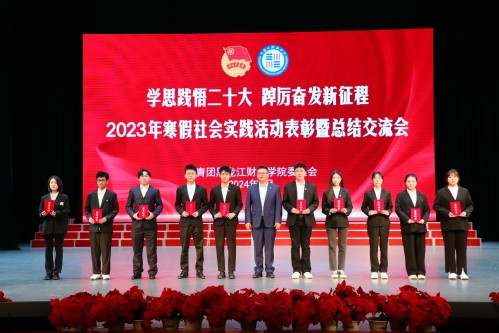 于长福代表学校向参加大学生寒假社会实践活动并做出辛苦付出的老师和同学们表示衷心的感谢,向获得表彰的集体和个人表示热烈的祝贺。他表示,各单位在社会实践组织过程中,努力挖掘实践育人内涵,优化实践组织形式,在团队安全教育、实践过程指导、实践成果深化等方面都取得了新的成绩,进一步增强了社会实践的育人效果。他强调,为把学校大学生社会实践活动继续引向深入,要善用社会实践,落实立德树人根本任务,坚持育人导向,将理想信念教育和价值引领融入社会实践全过程,要在社会实践中,深刻体悟国家在经济、社会、文化、科技、生态等方面的重大战略需求和战略部署,将个人的成长和祖国人民的需要紧密联系在一起,在实践中认识社会、锤炼意志、积累经验,自觉把爱国情、强国志、报国行融入人生选择和现实行动中;要融入“大思政”格局,形成实践育人大体系,将深化社会实践育人作为学校思想政治教育工作的重要平台,优化社会实践顶层设计,创新实践形式,统筹实践资源,强化实践保障,形成实践育人整体合力。要探索具有龙财特色的品牌实践项目,及时将好的经验做法固化为工作路径,形成专业与实践相结合的长效机制,打造“思政教育、基层体验、社会服务”三维一体的社会实践育人体系;要推进“三全育人”综合改革,探索育人新路径,聚焦经济社会发展的重点议题、热点问题、前沿问题,以社会实践为抓手,推进理论与实践、教师与学生、学校与社会进一步融合,在实践中“干实事”“解难事”“创新事”“长本事”,做出“看得见、能落地”的实际成效。他强调,同学们要做专业知识领域的开拓者、社会实践的奉献者、锐意进取的奋进者,立志成为敢于有梦、勇于追梦、勤于圆梦的时代新人,用青春书写无愧于时代、无愧于历史的华彩篇章。