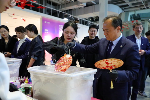 与会领导和嘉宾与创作师生交流、漂漆团扇的制作体验
