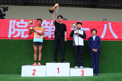 副校长董鲁敏为学生男子团体总分前三名颁奖