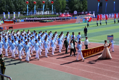 伴随着激昂的《运动员进行曲》,国旗、校旗、会旗、国旗护卫队、刀旗队、裁判员队伍、各代表队队伍迈着矫健的步伐,喊着嘹亮的口号,依次步入会场,充分展示了我校师生员工激情澎湃、奋发向上的精神风貌。