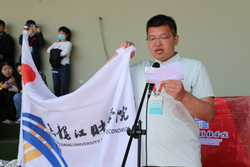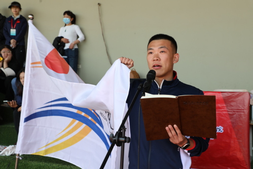 体育军事教学部教师纪松岐代表裁判员宣誓,将严格遵守竞赛规则和裁判员准则,崇尚公平公正公开的精神,为运动员创造良好的竞技氛围。管理学院2021级市场营销专业马子昂代表运动员宣誓,将严格遵守比赛规则和比赛纪律,以饱满的热情和坚韧的意志投入比赛,赛出风格、赛出水平,展现龙财人积极向上、顽强拼搏的精神风貌。
