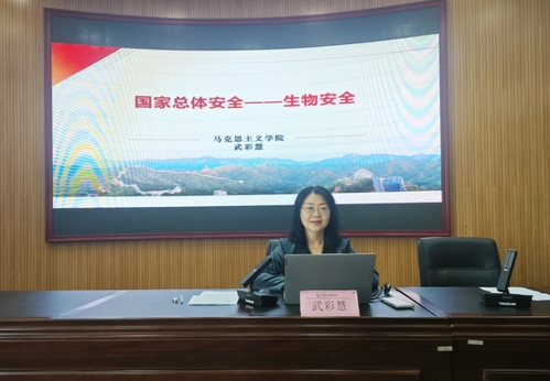 武彩慧教授以《国家总体安全——生物安全》为题,从生物安全的重要性,生物安全的主要内容,生物安全面临的威胁与挑战,维护生物安全的途径与方法四个方面,深刻阐述了新形势下加强生物安全建设的重要性和紧迫性。她强调,生物安全关乎人民生命健康,关乎国家长治久安,关乎中华民族永续发展,青年学生要有生物安全意识和知识、有法治意识与行动能力、有良好的生活习惯、有科学防护能力、有良好的身体素质,积极参与构建生命安全共同体。