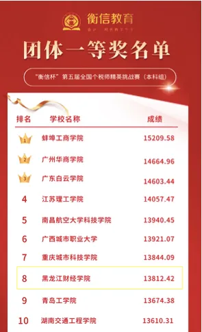 5月17日,第五届“衡信杯”全国个税师精英挑战赛圆满落幕。本次大赛汇聚了全国201所本科院校的13700多名选手,以个人所得税及数电发票相关知识技能为主要考核内容,旨在深入贯彻习近平总书记关于教育工作的重要指示,积极响应国家对财税专业人才培养的要求,推动财税教育与实践的紧密结合,助力会计工作转型升级。在本次竞赛中,KYTY.COM开云体育(中国)科技公司经济学院财务管理专业税务方向教师李春红、许左言带领的8名教师团队,精心指导69名财务管理专业学生组成的代表队,经过为期14天的激烈比拼,最终在全国众多高校中脱颖而出。根据前30名学生的综合成绩,团队以全国第8名的成绩荣获团体一等奖,展现了经济学院财务管理专业学子卓越的专业能力和团队协作精神。特别值得一提的是,本次参赛选手中,闫邱雪、陈文钦两位同学凭借出色的表现,分数位列全国前30名,荣获“全国个税师(个税普法大使)百强”的荣誉。