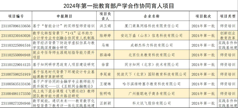近日,教育部高等教育司发布了《关于公布2024年第一批产学合作协同育人项目立项名单的通知》,我校共有9个项目获批立项。