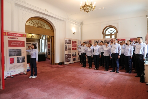 参观最后,全体人员面对鲜红的党旗,庄严地举起右手,重温入党誓词,这既是对初心使命的回望,也是对历史和先辈的告慰,更是对接续奋斗的宣示。